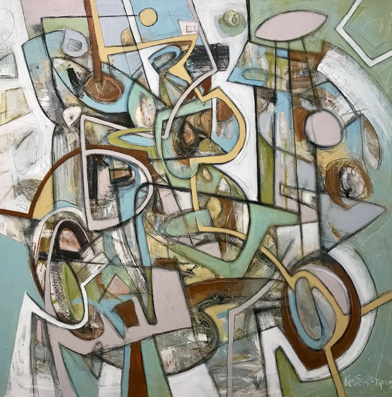 The 5th Symphony, 44 x 44”, latex, pastel, pencil on canvas.